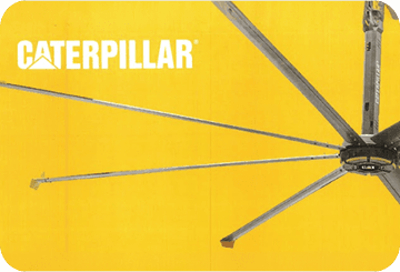 Caterpillar(CAT) 라이선스 라인업의 120"·168" HVLS(High-Volume Low-Speed) 실링팬으로, 넓은 개방 공간에서 완만한 대류로 냉감·환기 ...